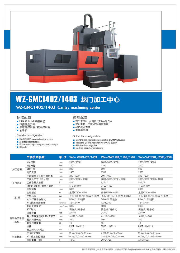 GMC1402/1403/1702/1703/1704/2002/2003/2004龍門加工中心